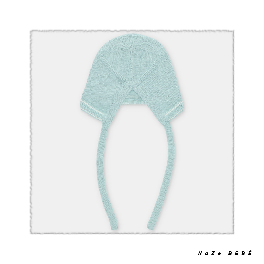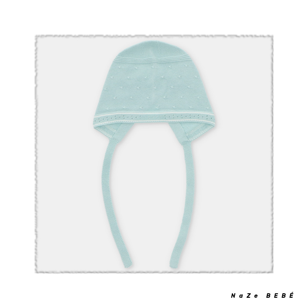 ¡¡REBAJAS!! Conjunto para bebé en verde bebé formado por jubón con estructura de punto links con punto espigado y detalles calados. Polaina a juego. Capota de punto links con punto espigado y cenefa de punto links al contraste con detalles calados