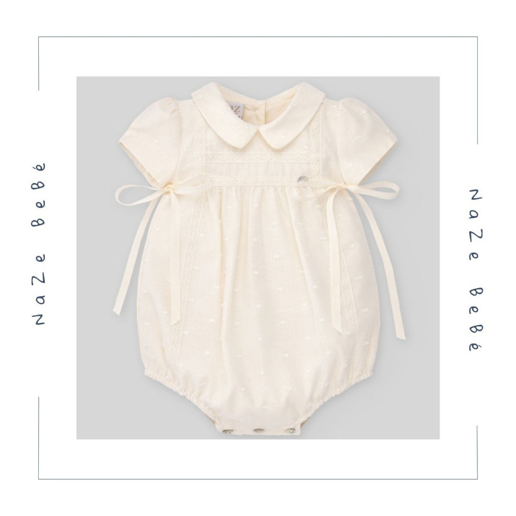 NUEVA COLECCIÓN. Elegante pelele de bautizo para niño de la marca Paz Rodríguez. Perteneciente a la colección ESENCIAL, destaca por su tejido de muselina plumeti, cuello clásico y lazos laterales. Forrado en algodón 100% para asegurar el máximo confort de tu bebé en su día especial.