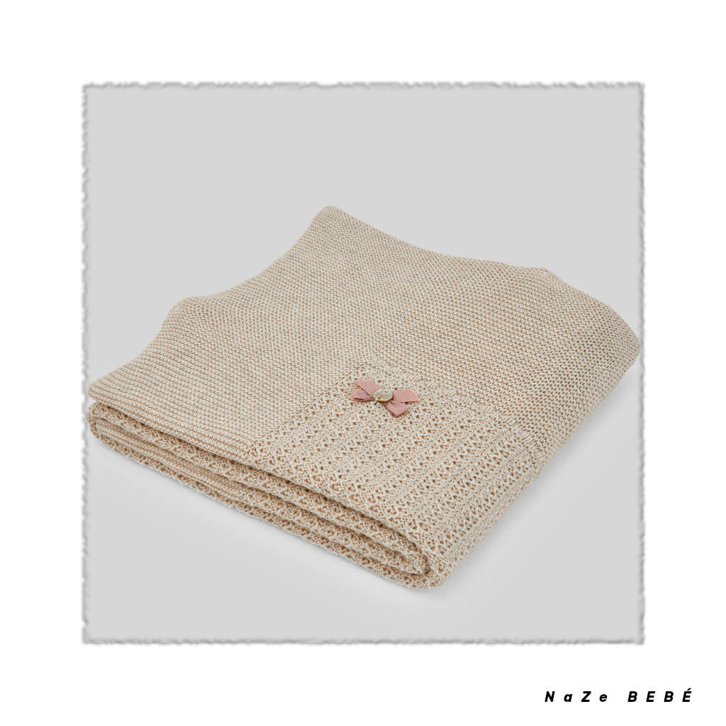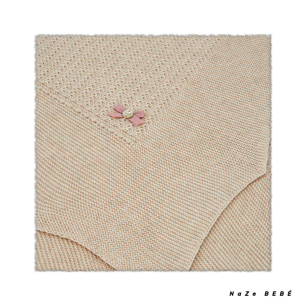 ¡¡REBAJAS 20% DE DTO!! COLECCIÓN INVIERNO 2024. Toquilla para bebé de la marca española Paz Rodríguez en color avena/rosa atardecer. Toquilla de punto con detalles calados y rematada en picos. Pequeño lazo a contraste con placa decorativa de la marca. Perfecta para arropar a los más pequeños.