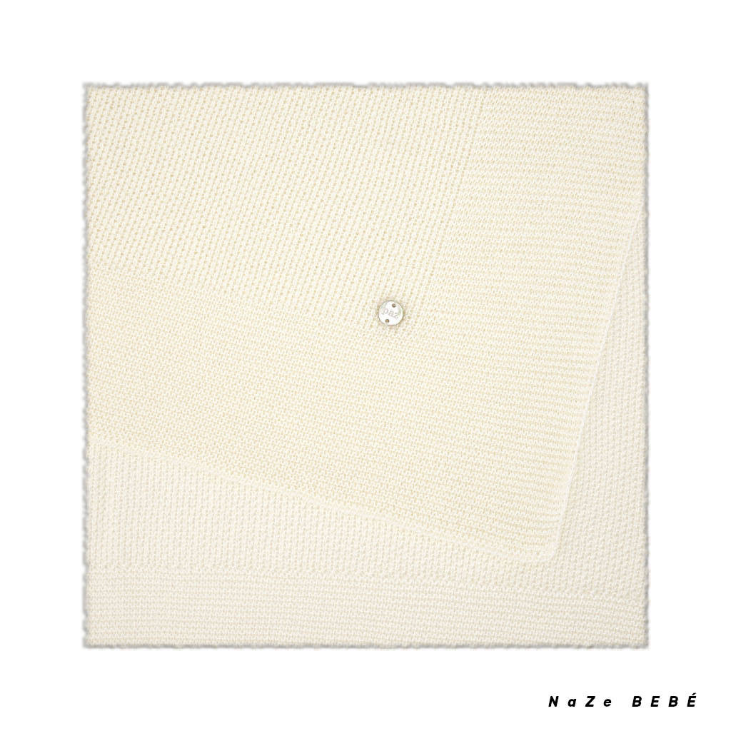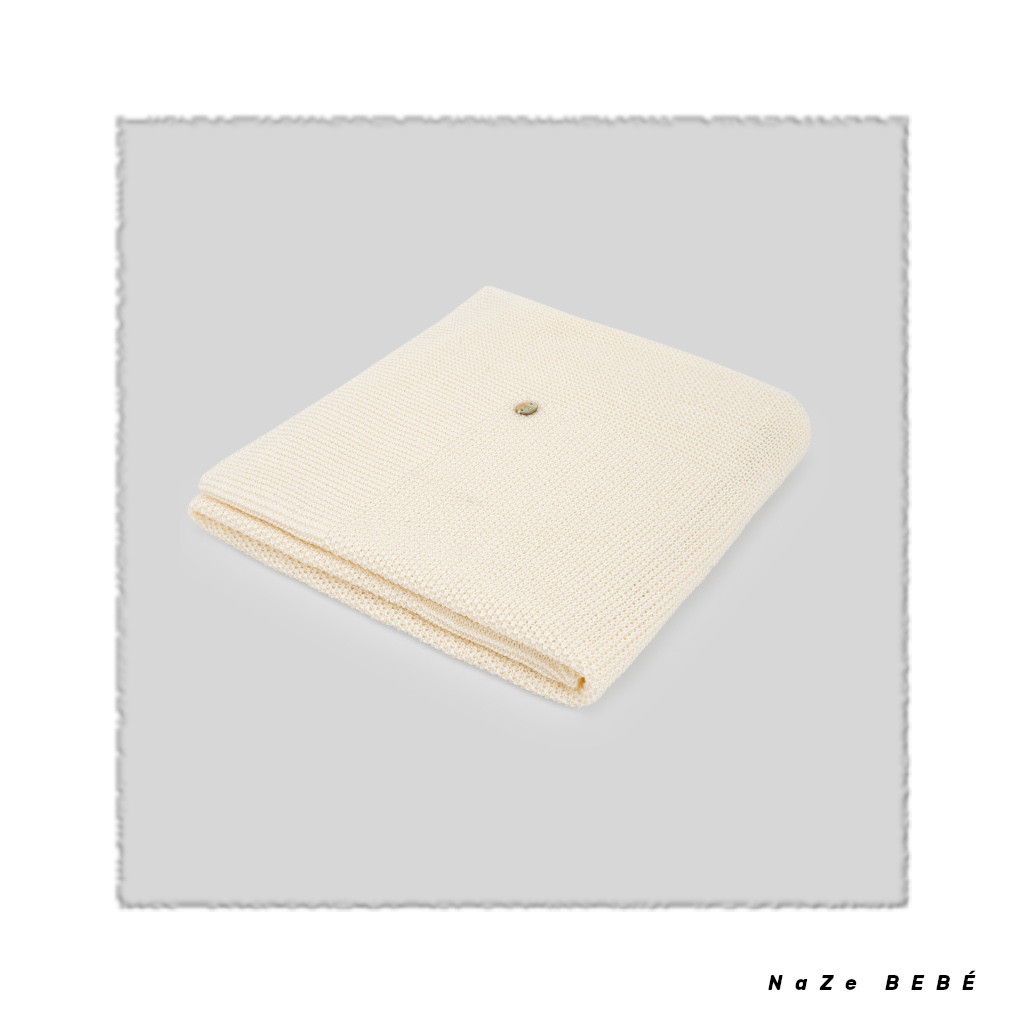 ¡¡REBAJAS 20% DE DESCUENTO!! COLECCIÓN VERANO 2024. Toquilla básica para bebé de algodón mercerizado en color beige con detalle de placa decorativa de la marca.