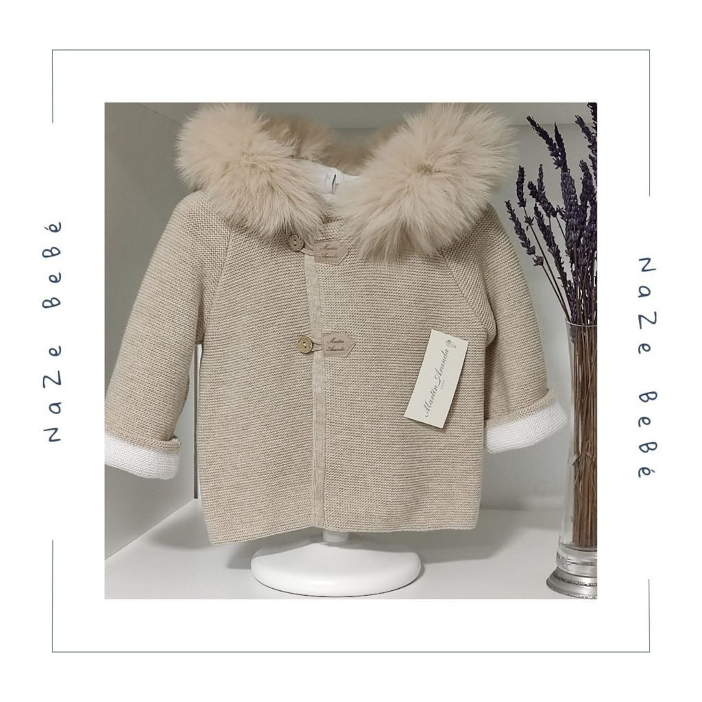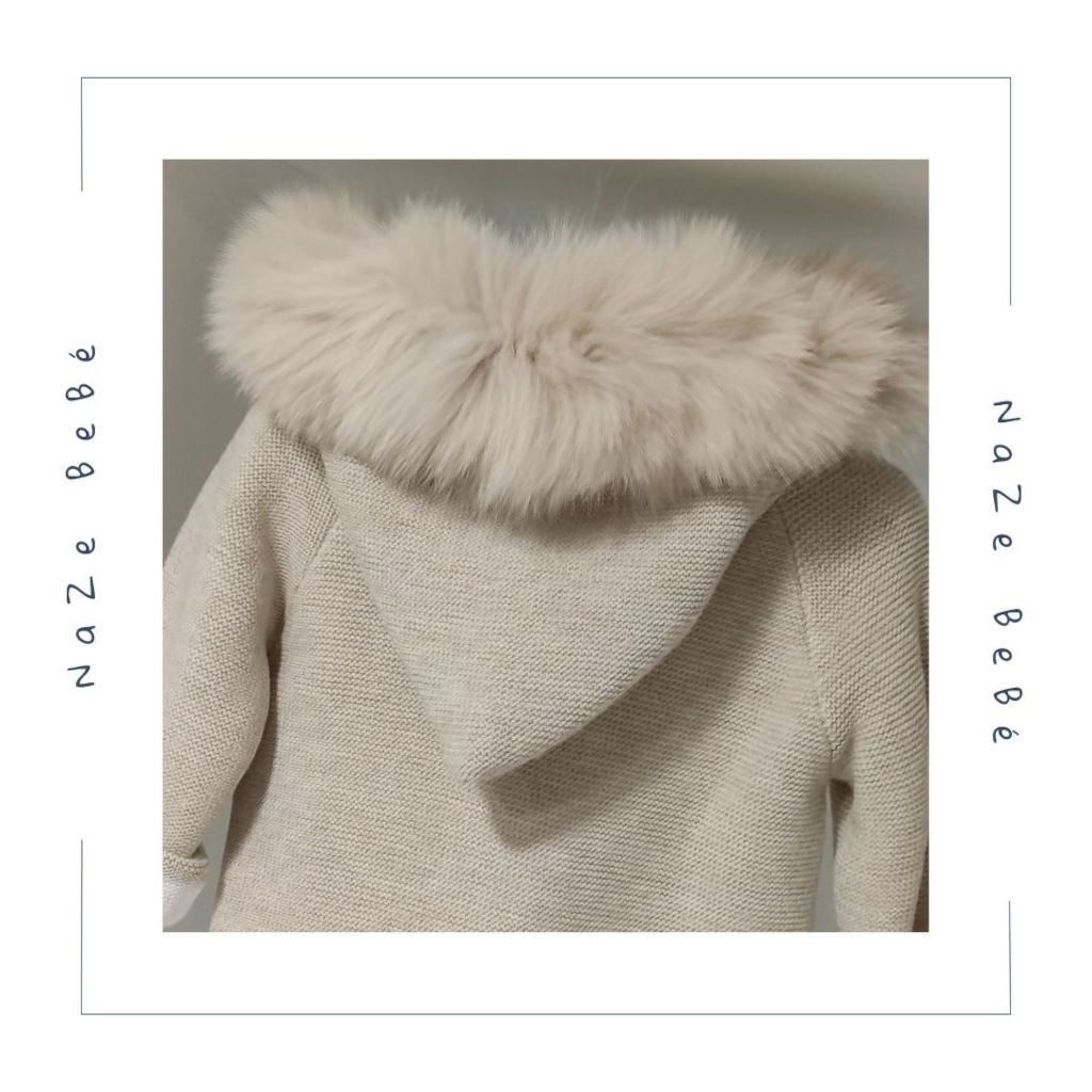 COLECCIÓN INVIERNO 2025. Trenka de punto para bebé con capucha de pelo natural del mismo color, ideal para el invierno. Diseño cálido y elegante para mantener a tu bebé abrigado y cómodo. Disponible en varios colores.